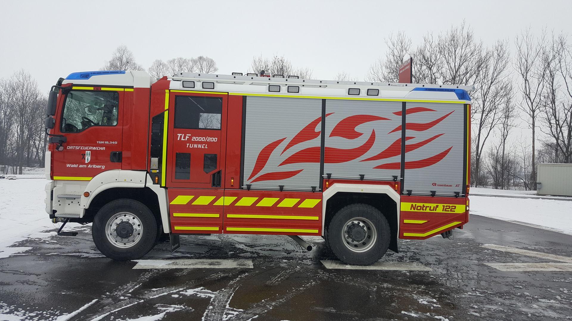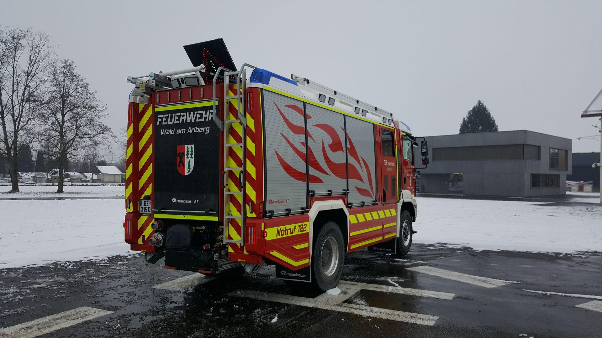 Nachwuchs in der Arlbergregion mit besonderen Ausrüstungsgegenständen. Als Stützpunktwehr für Tunnelanlagen konnte die Feuerwehr Wald am Arlberg ihr neues Tanklöschfahrzeug mit Tunnelausstattung von der Firma Rosenbauer in Betrieb nehmen. Neben der Standardbeladung für Brand- und technische Einsätze sind auch Gegenstände für den Einsatz in Straßenverkehrstunnel oder Tiefgaragen vorhanden. Langzeitpressluftatmer, Spezialwerkzeug und Schlauchtragekörbe sind für langfristige Einsätze ausgelegt, um schneller und effektiver helfen zu können.